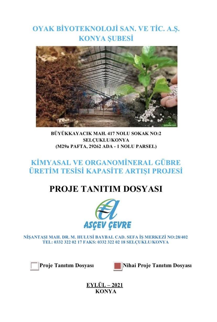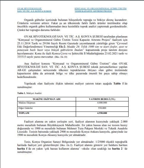 Oyak Biyoteknoloji San. ve Tic. A.Ş. Konya Şubesi, gelişen sanayi ve teknoloji doğrultusunda artan maliyetlerin de etkisiyle dışarıya bağımlılığın azaltılması amaçlanmıştır. Konya Organize Sanayi Bölgesinde yatırım kararı almıştır. Burada kimyasal ve organomineral gübre üretimi yapmayı planlamaktadır.