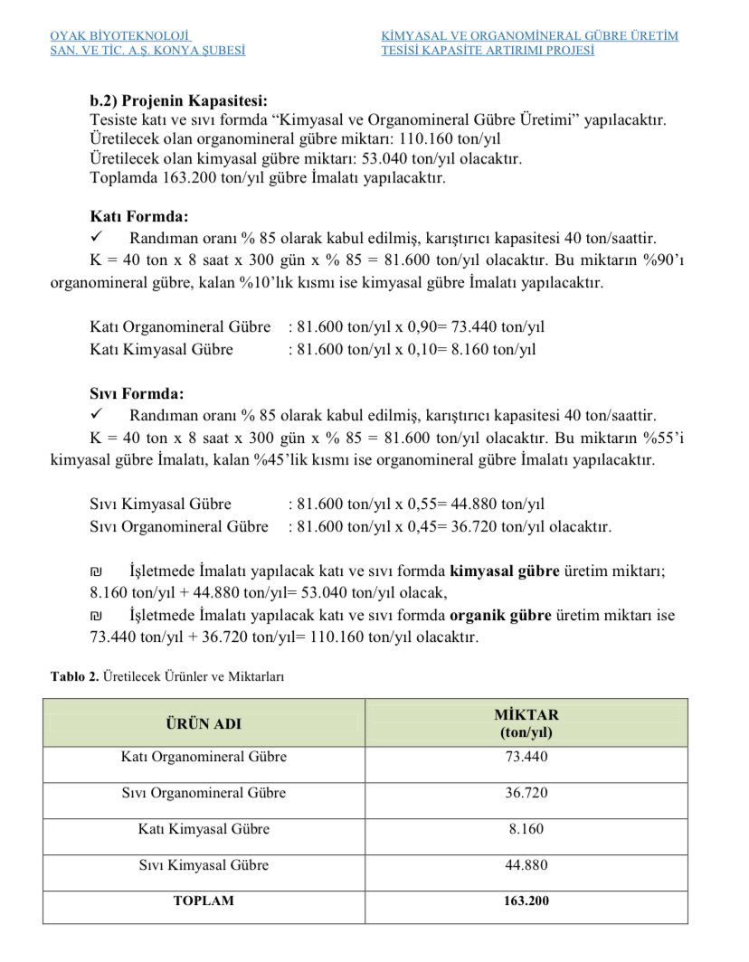 Ana faaliyet konusu “Kimyasal ve Organomineral Gübre Üretimi” olan OYAK BİYOTEKNOLOJİ SAN. VE TİC. A.Ş. KONYA ŞUBESİ teknik personellerince yapılan AR-GE çalışmaları sonuçlanmıştır. Ülkemiz topraklarının ihtiyacı olan gübre üretiminde kapasitesini daha da artırarak bölge ve ülke pazarında önemli bir paya sahip olmayı hedeflemektedir.